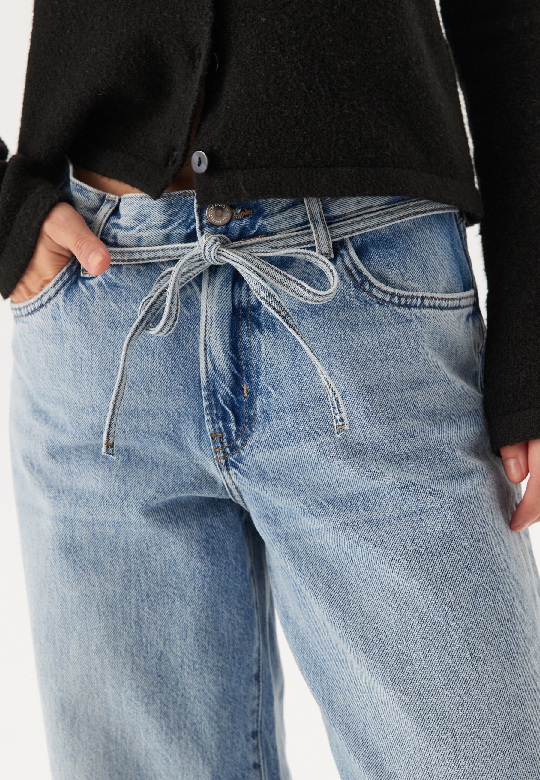 - Knytband vid midjan.