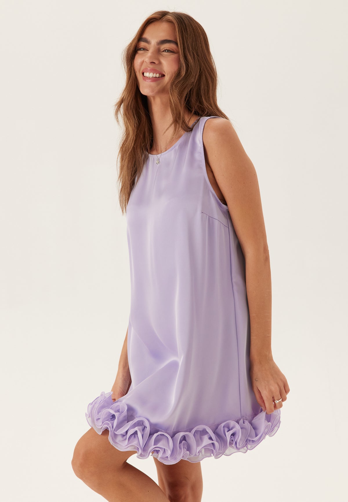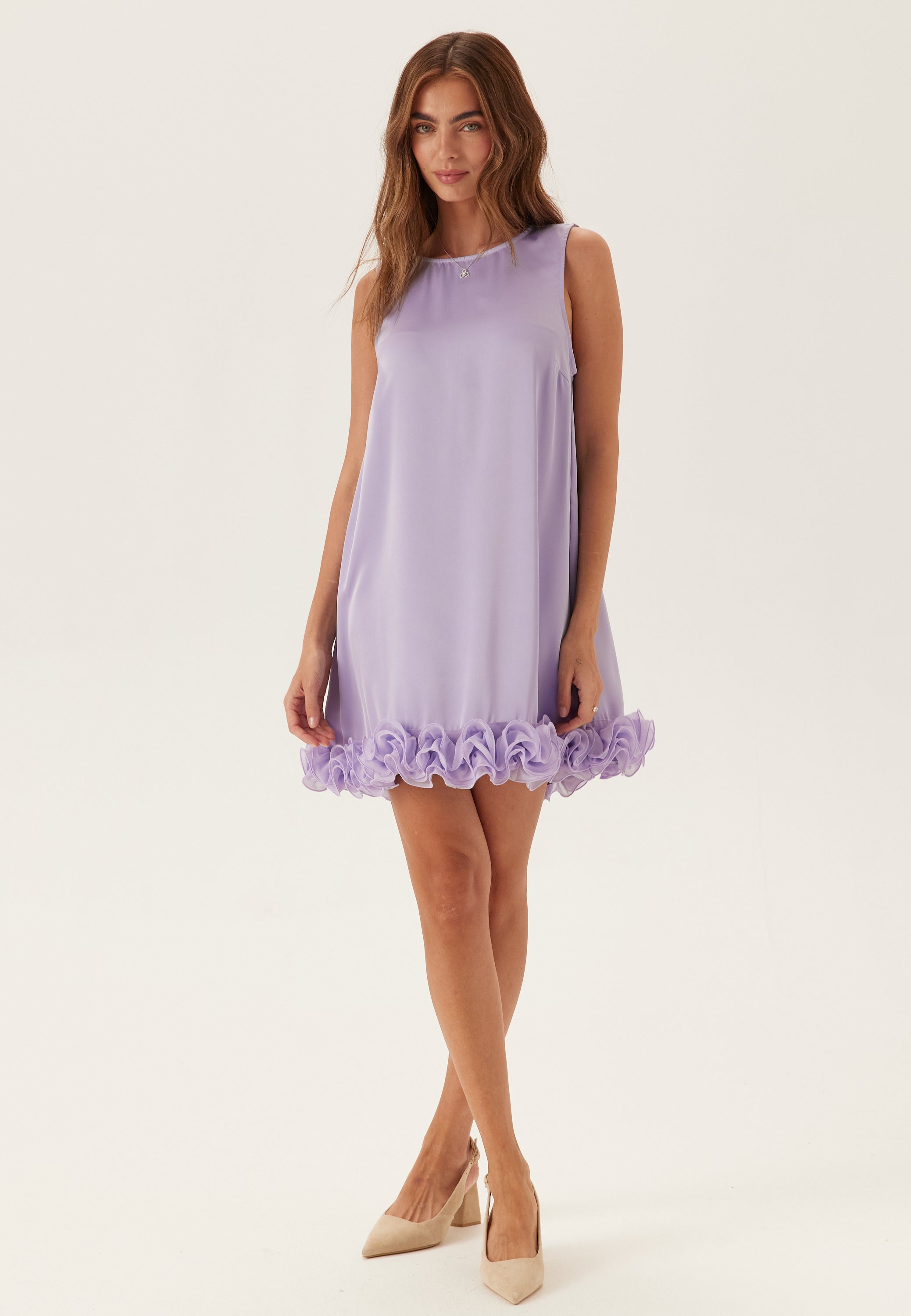 - A-linjeform med en volang längsmed nederkanten