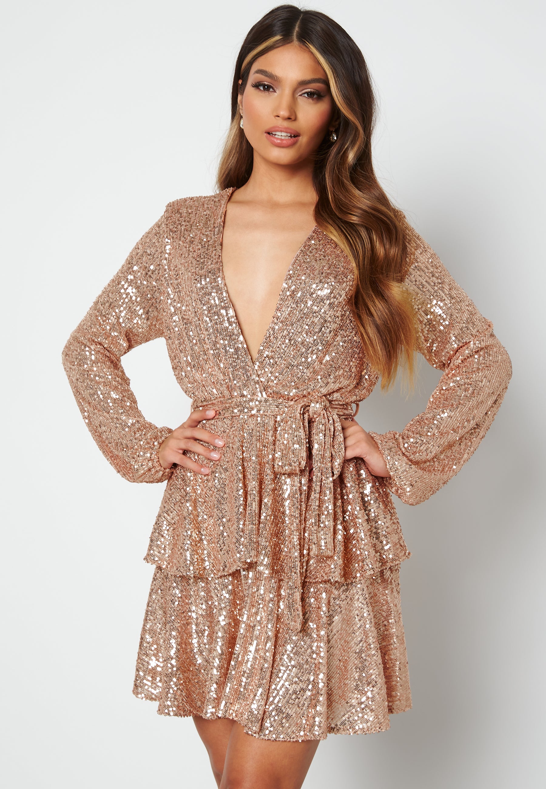 Sequin Deep V Ruffle Skater Dress