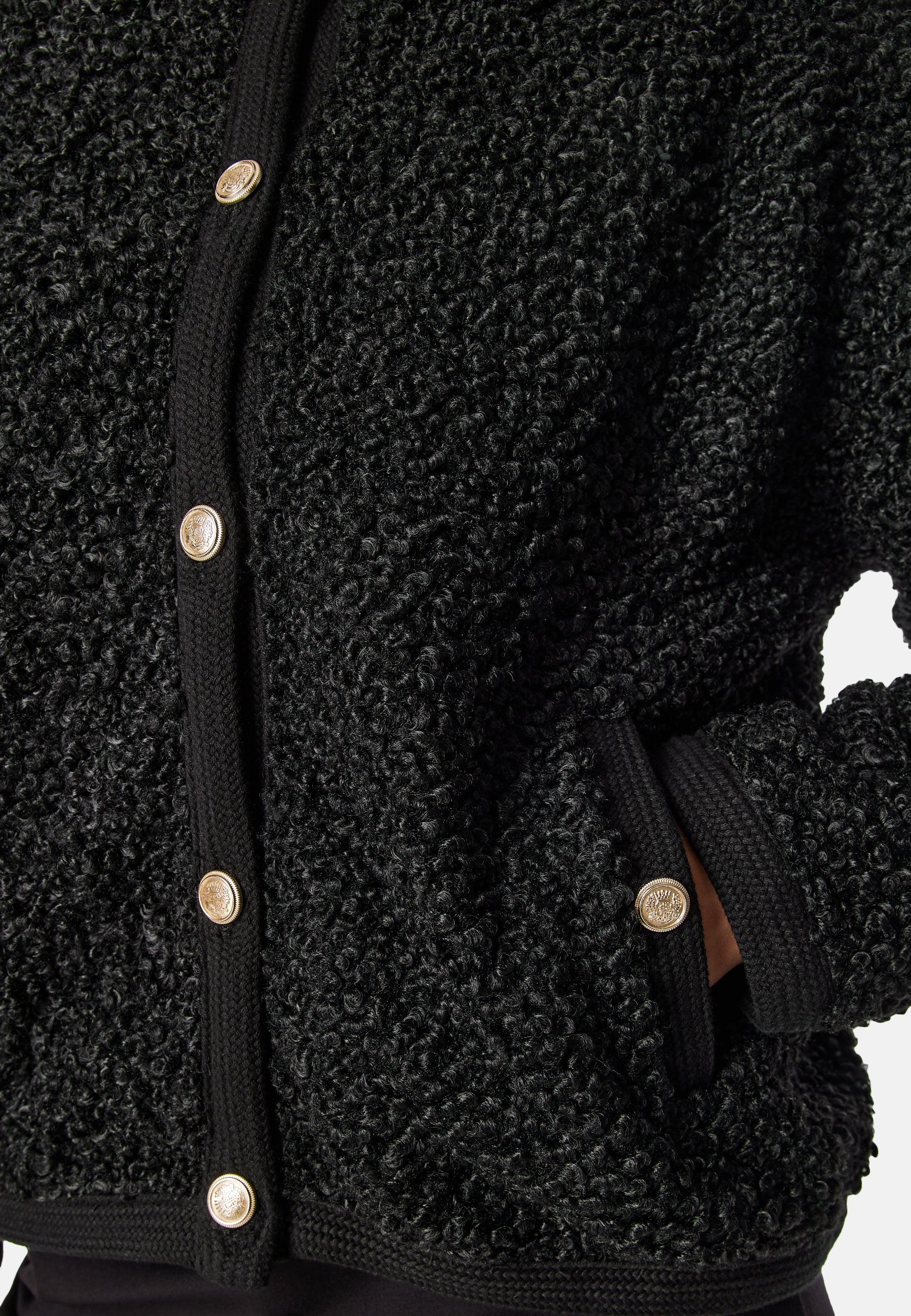 - Knäppkant med guldknappar.
