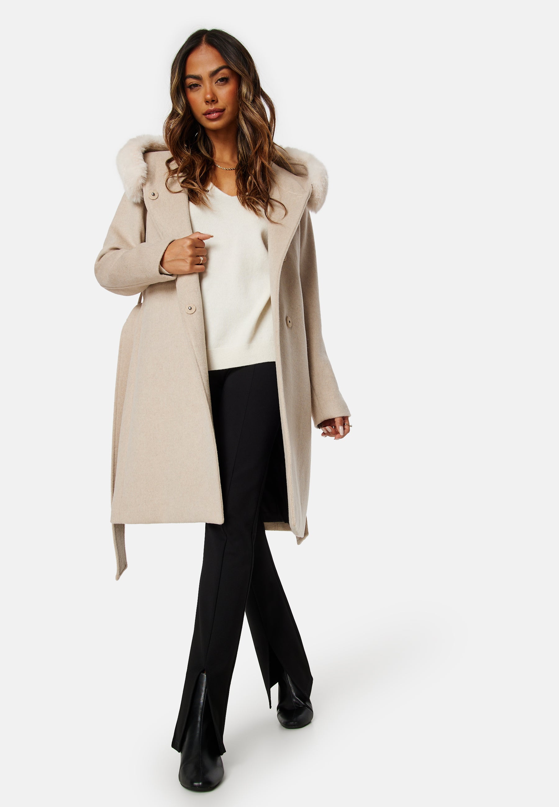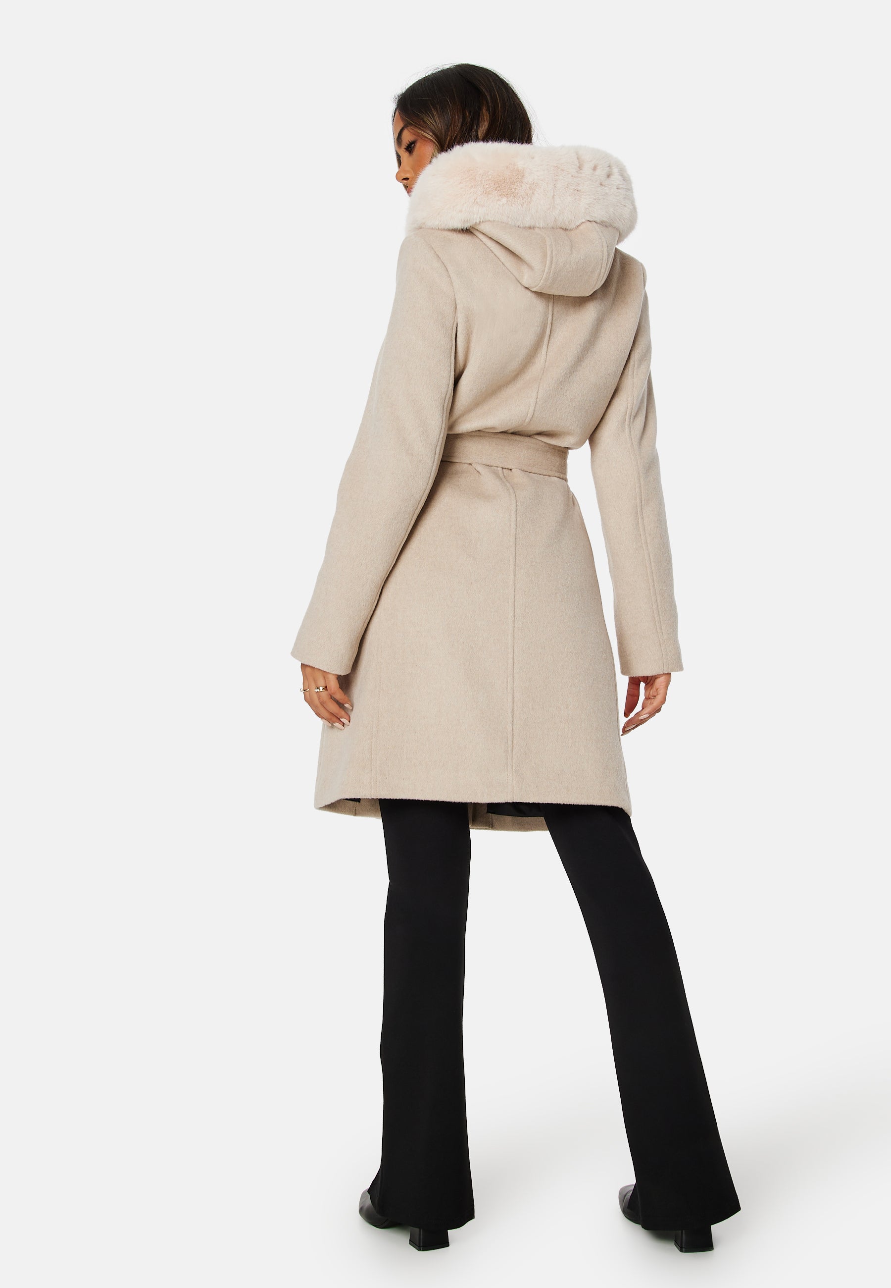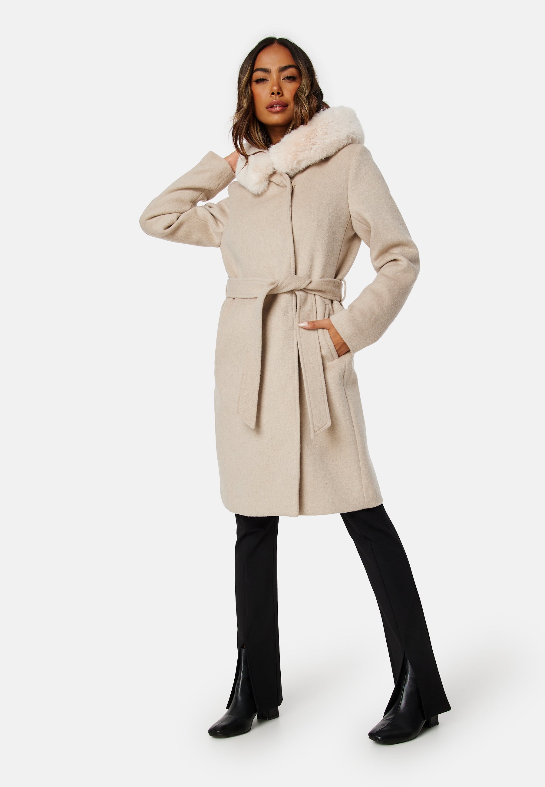 • Elegant kappa från ROCKANDBLUE med knytband och fuskpäls.