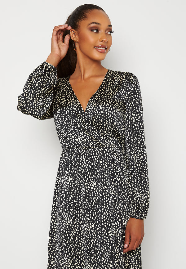 Naisellinen kietaisumekko kivalla kuvioinnilla.
