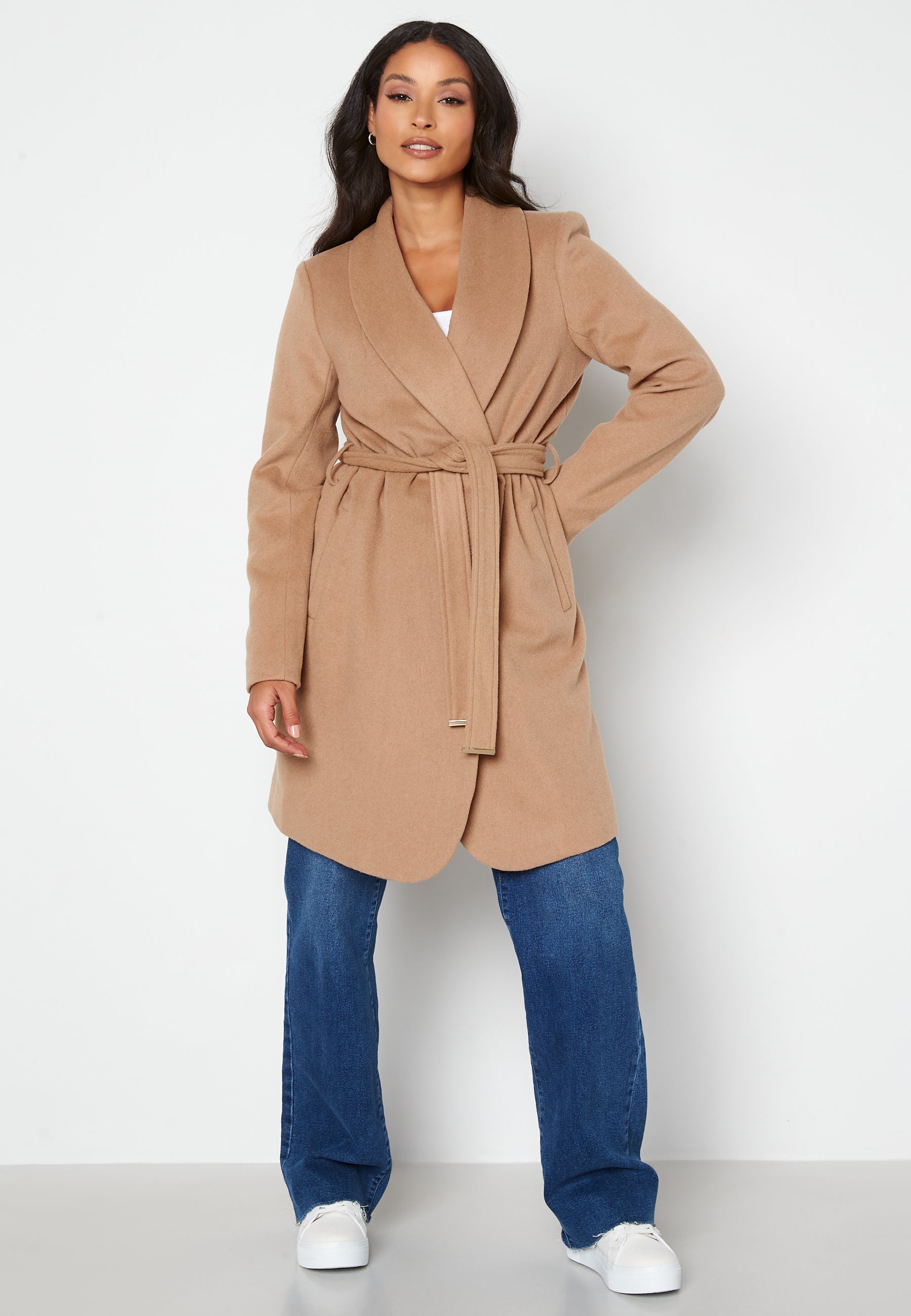 Fin höstkappa i ullblandning från CHIARA FORTHI. Jackan har två fickor framtill samt ett bälte i midjan.