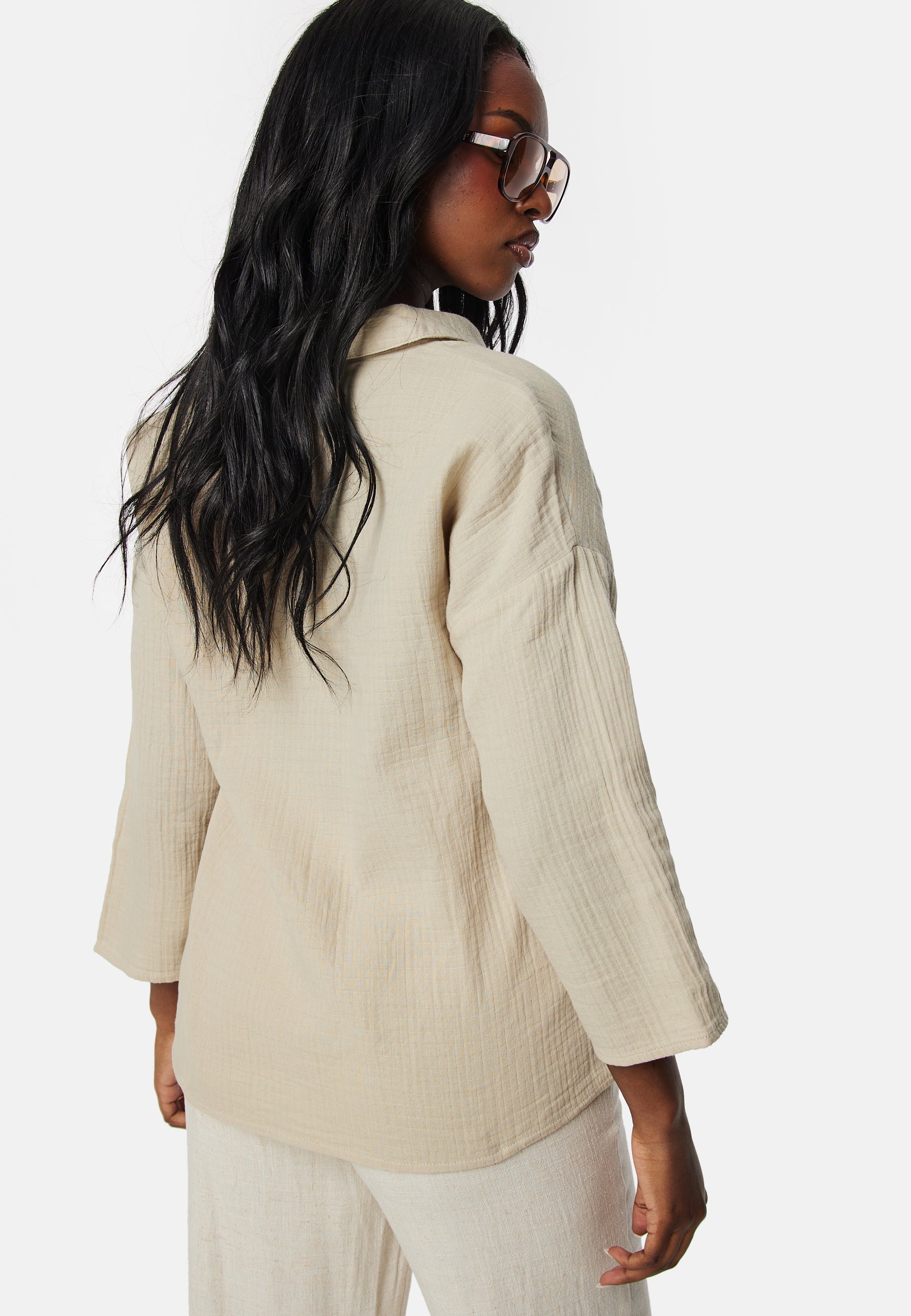- Lös passform med nedhasad axel.