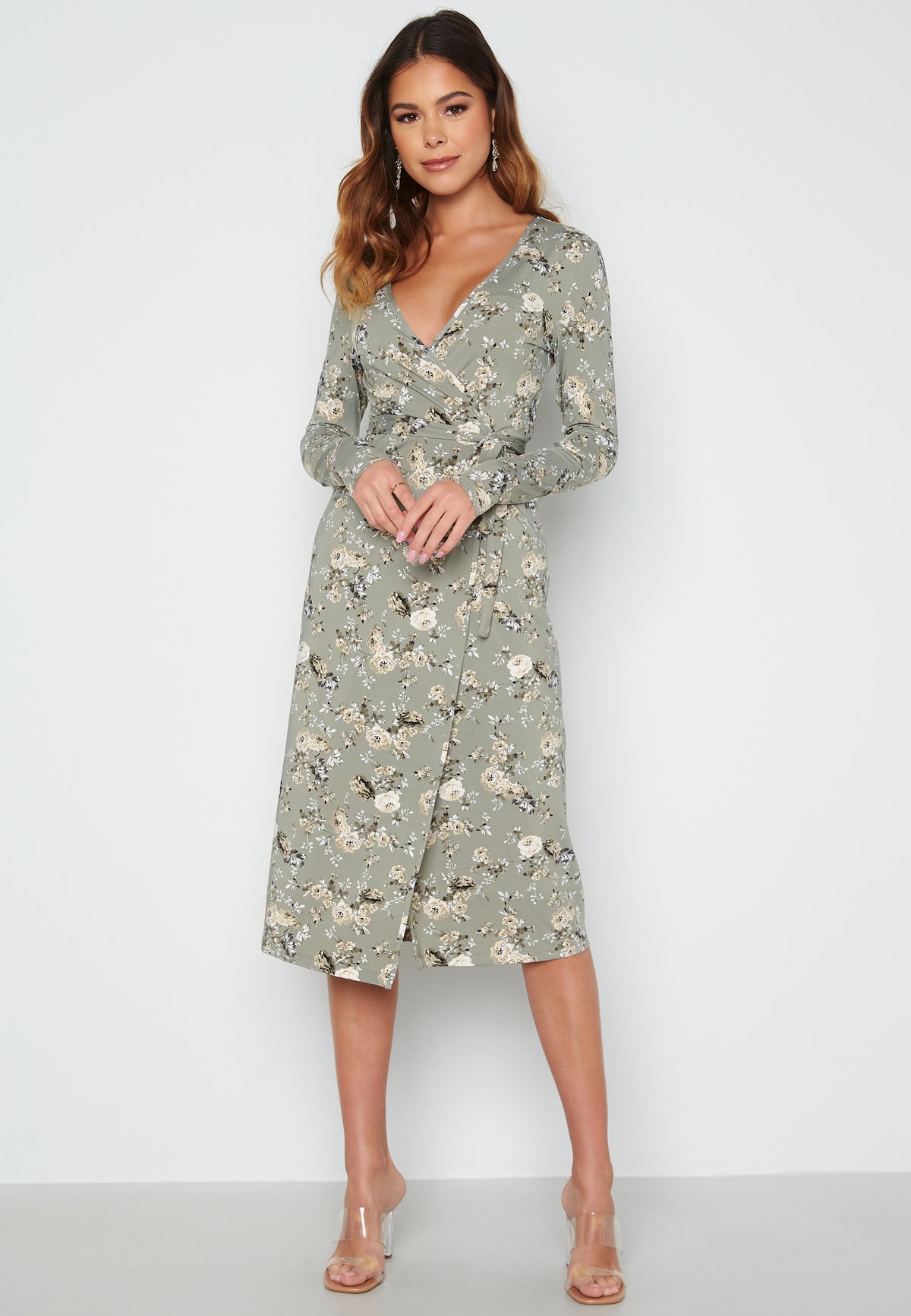 Fin omlottklänning i trikå från BUBBLEROOM med lång ärm.